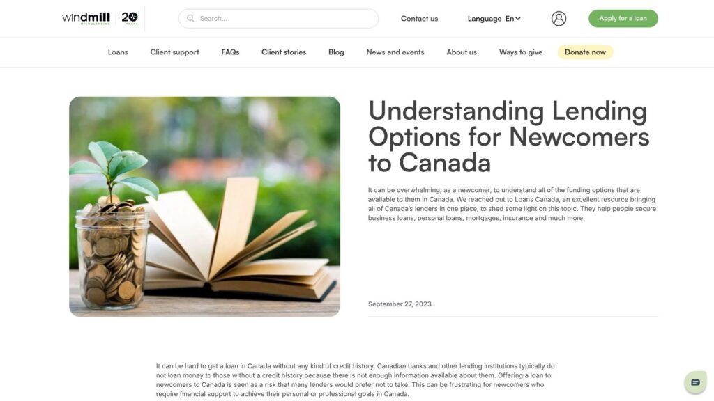 Windmill Microlending is a national charity providing working capital to skilled immigrants and refugees. It proves that alternative underwriting models can work by combining accessible funds with wraparound professional support. The organization offers low-interest microloans of up to $15,000 to newcomers trying to restart careers and businesses in Canada.