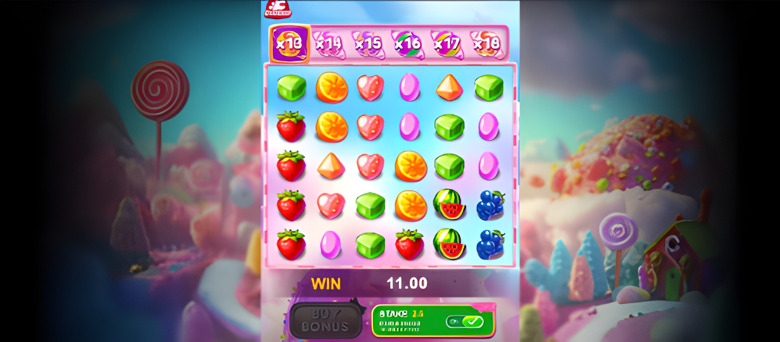 We started by wagering 2 Sweep Coins in the Funky Games slot Sweet Bombs. We lost in our first attempt but got our first reward with a second 2.5 SC wager, which activated the bonus option “Double Chance”. For our third wager, we went for the “Double Chance” again, and guess what? We landed a massive 11.00 win less than 5 minutes after starting our Titan Treasure test.