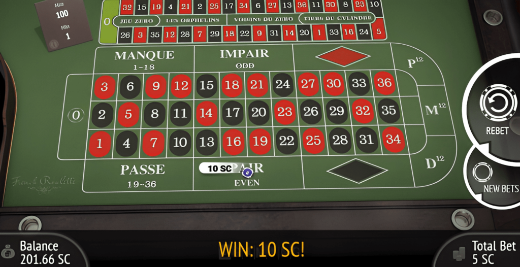 BGaming’s French Roulette is a table game classic dating back to the 17th century, so what better way to put our free Sweep Coins to use? We started with a 5 SC on the pair. The game is extra satisfying because it shows a 3D animation of the roulette spinning, making it feel more like playing in a real casino.